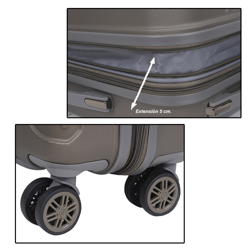 Observaciones- 8 ruedas - Extensible - Posee forrería - Bolsillo interno - Cremalleras y deslizadores resistentes - Material resistente - Carro interno
