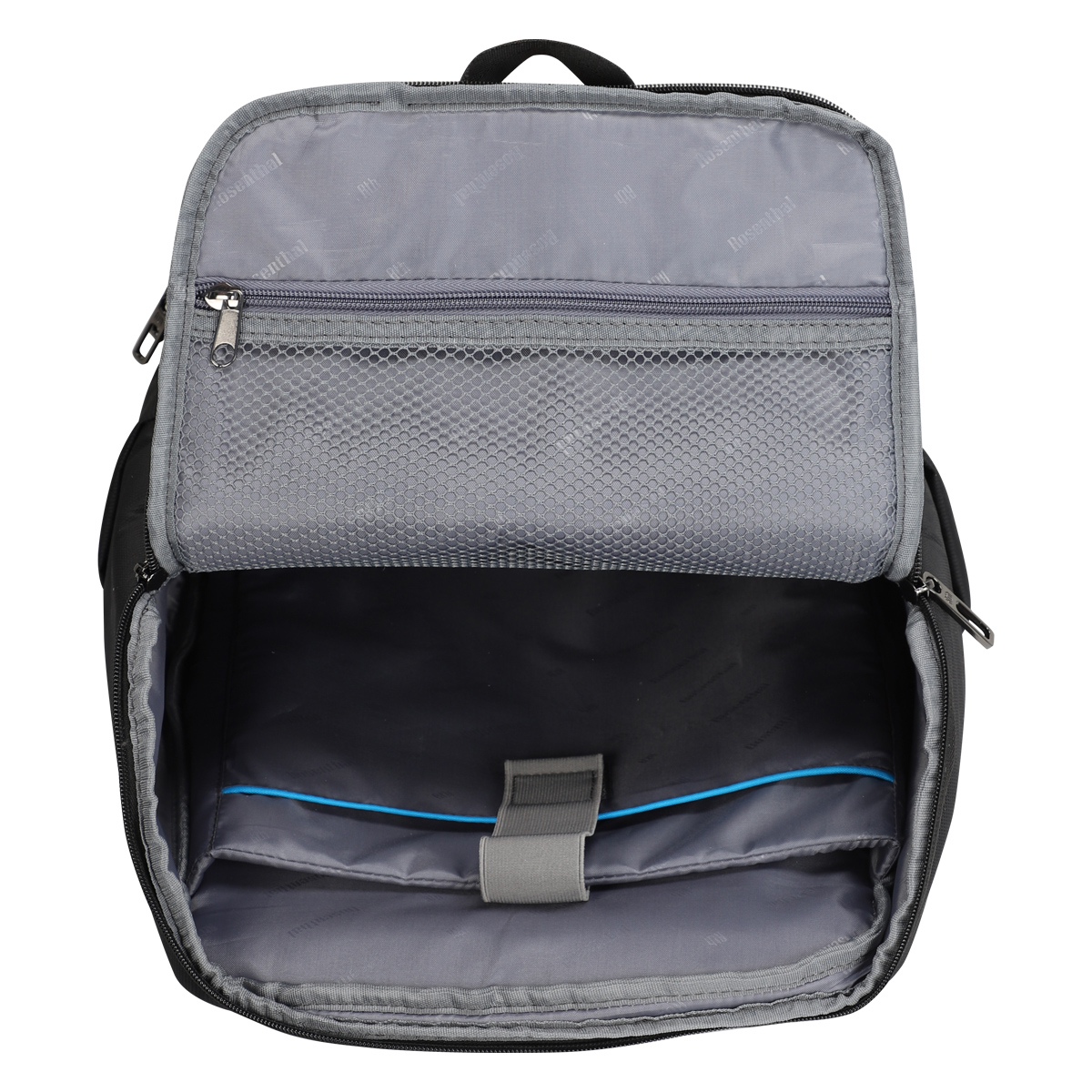 ObservacionesMochila porta notebook - apertura princiapal formato U - interior con bolsillo de red - doble bolsillo en el frente - espalda acolchada - tiras acolchadas y regulables - faja para sujetar al carro de la valija - bolsillos laterales.
