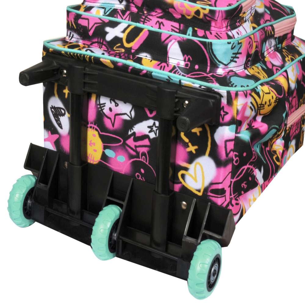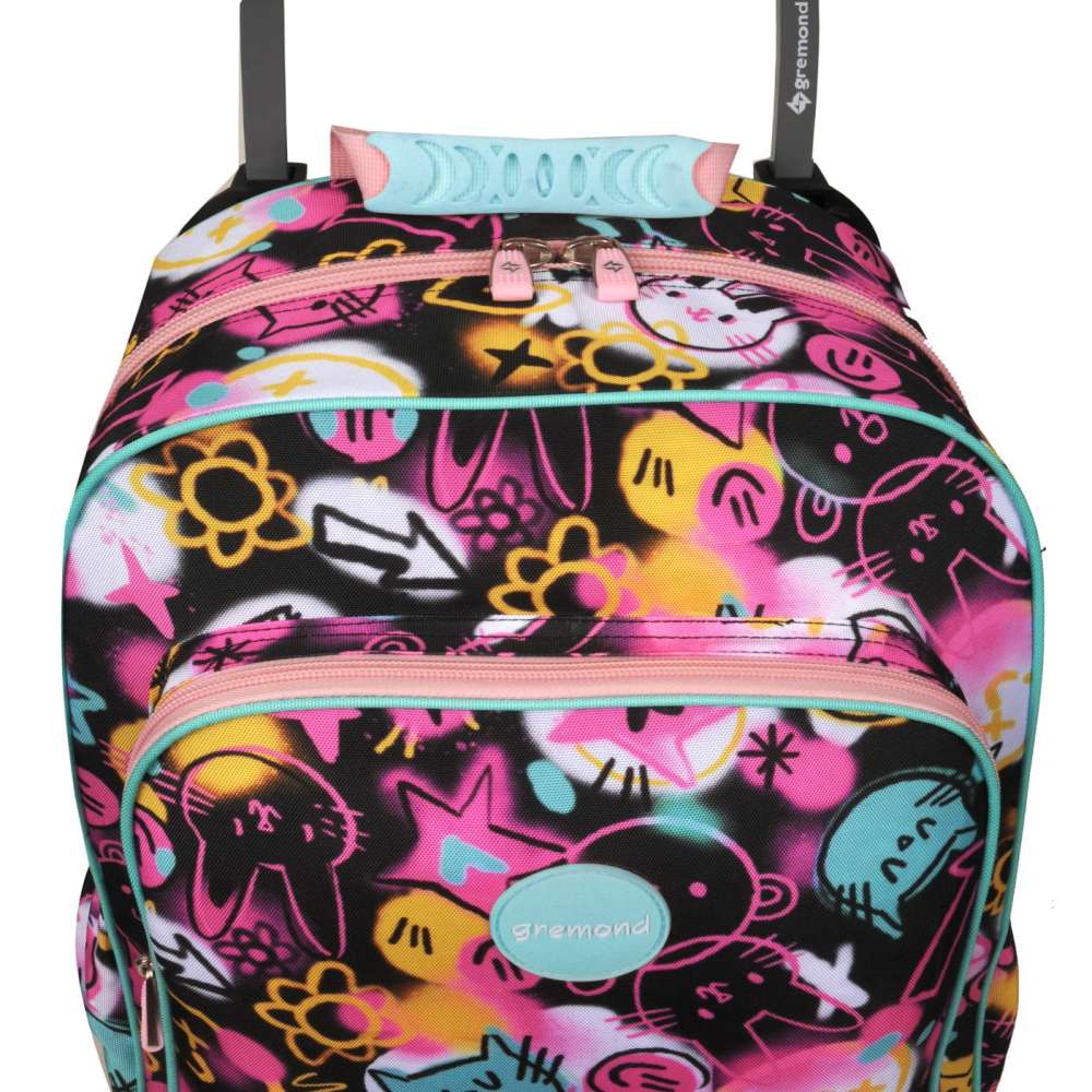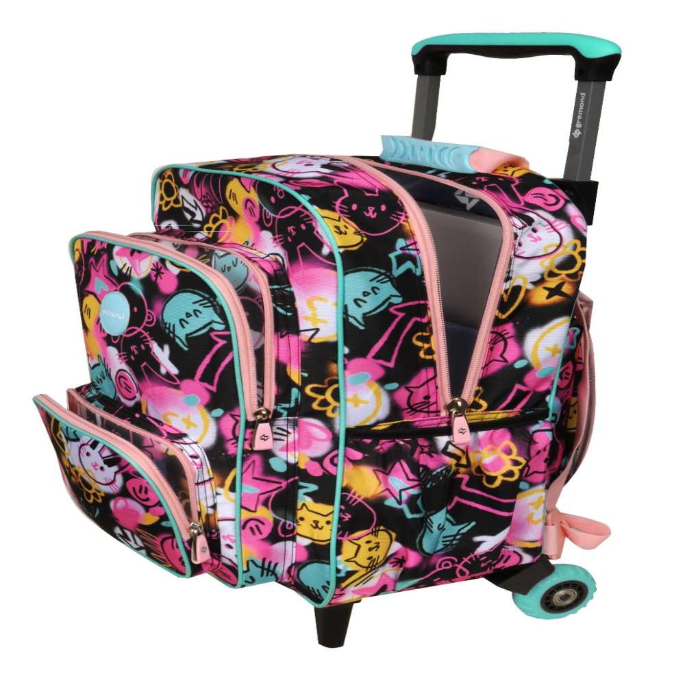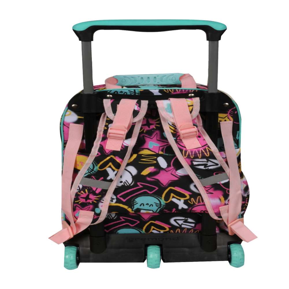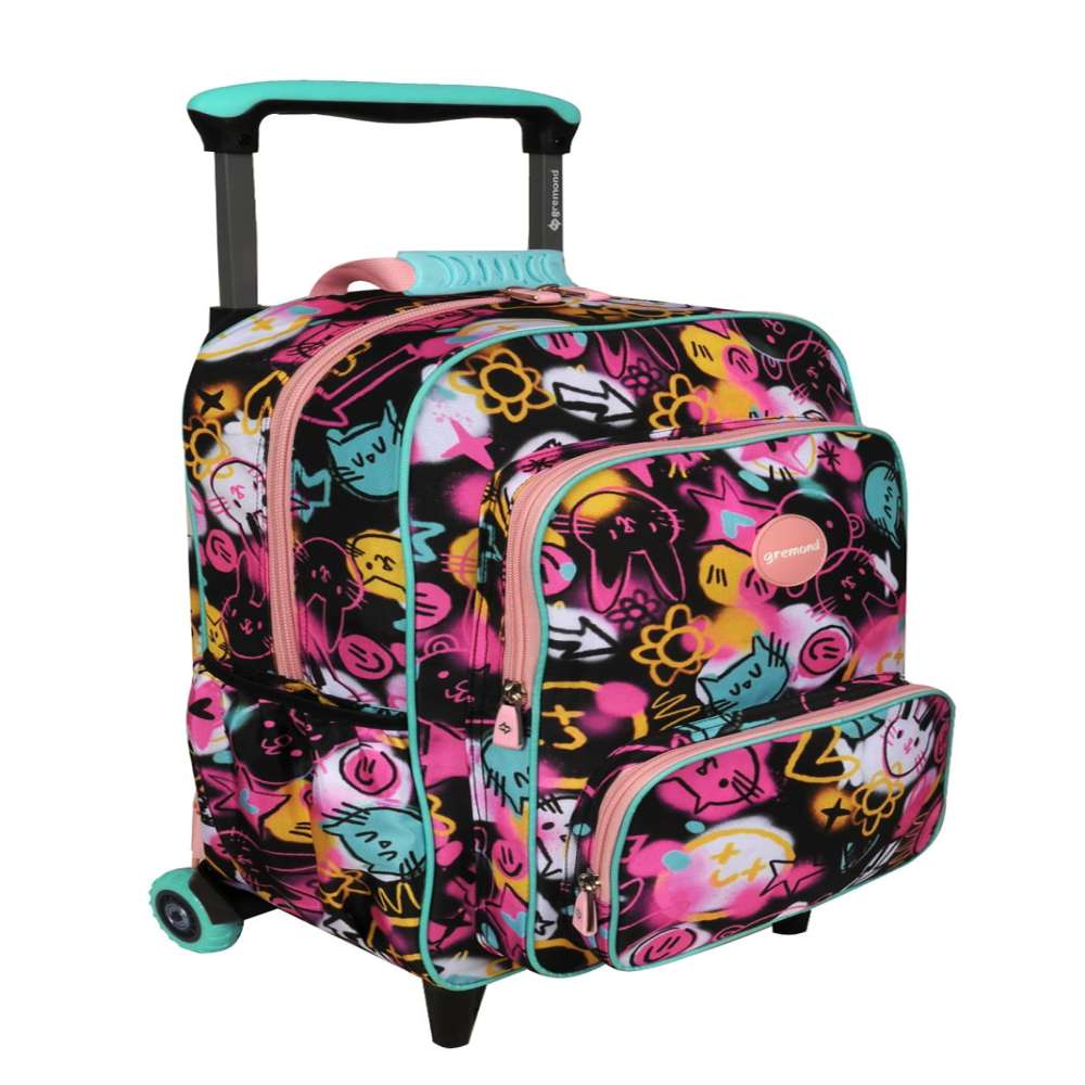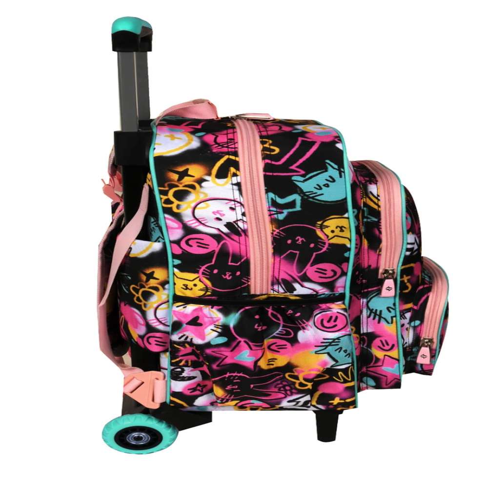 Observaciones3 ruedas tractor - Amplio compartimiento principal - 2 bolsillos al frente con organizadores - Bolsillos laterales - Incluye tiras de espalda - Cremalleras y deslizadores resistentes - Textil resistente