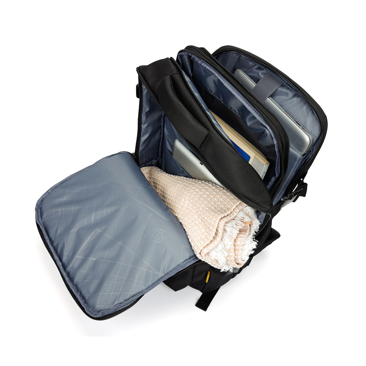 Observaciones- Amplio compartimiento principal - Espacio acolchado porta notebook - bolsillo en el frente - Bolsillo con apertura vertical - Manijas en la parte superior y lateral - Posee forrería - Correas de compresion -Faja en el dorso para transportar en valija - Tiras de espalda acolchadas - Correas regulables - Cremalleras y deslizadores resistentes - Textil resistente