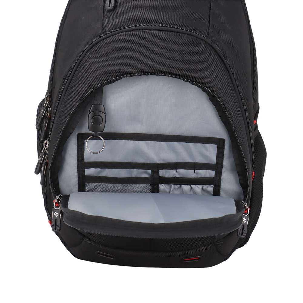 Observaciones1 divisiones - Espacio acolchado porta notebook - 3 bolsillos en el frente (uno con organizador) - Doble bolsillo en los laterales con cierre- Espalda acolchada - Tiras de espalda acolchadas - Faja para transportar en valija - Posee forrería - Cremalleras y deslizadores resistentes - Textil resistente