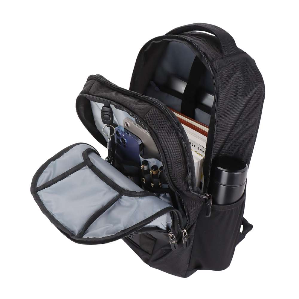 Observaciones2 divisiones - Espacio acolchado porta notebook - 2 bolsillos en el frente - Doble bolsillo en los laterales de red y dos con cierre- Espalda acolchada - Tiras de espalda acolchadas - Faja para transportar en valija - Posee forrería - Cremalleras y deslizadores resistentes - Textil resistente