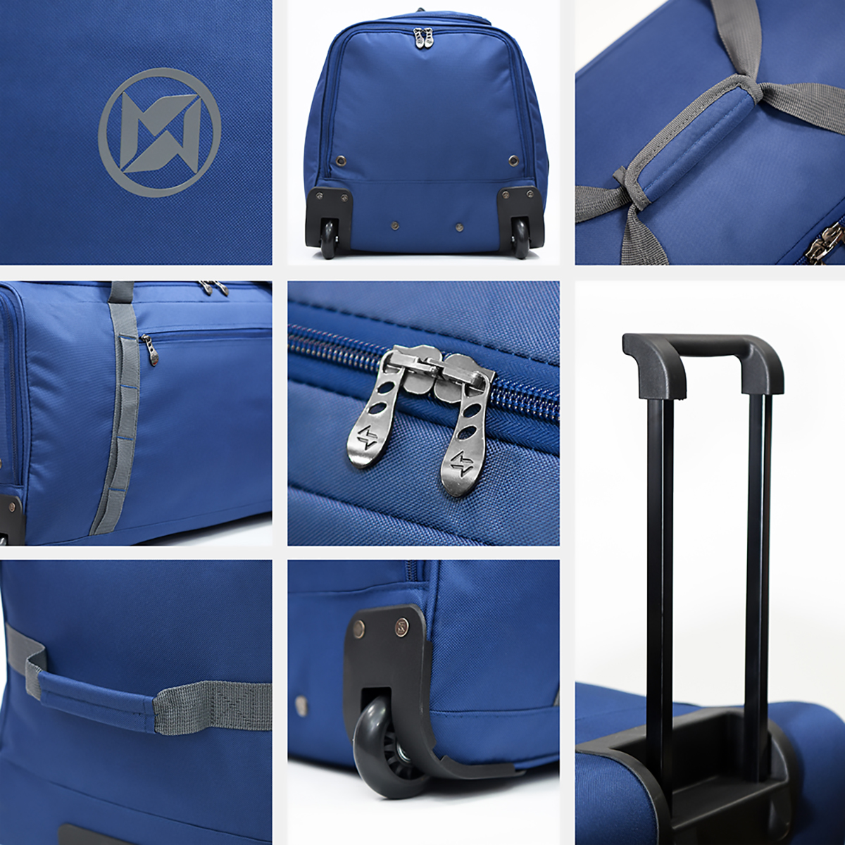 Observaciones- Amplio compartimiento principal - 1 bolsillo en el frente - Bolsillo lateral para ropa humeda - Manija lateral - 2 ruedas - Cremalleras y deslizadores resistentes - Textil resistente - Carro interno