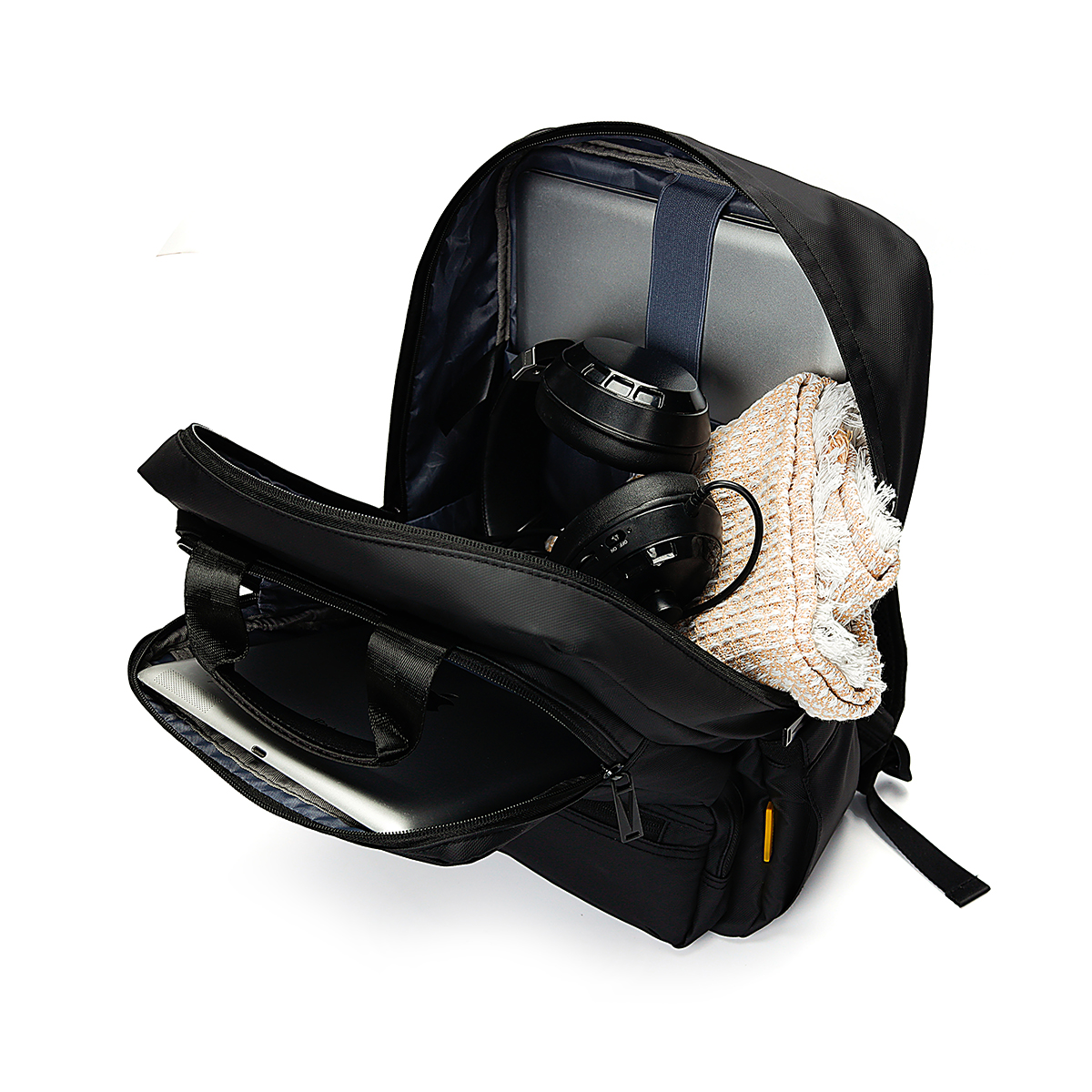 Observaciones- Amplio compartimiento principal - Espacio acolchado porta notebook - 2 bolsillos en el frente - 2 bolsillos en los laterales - bolsillo con apertura vertical en el frente - Doble manija en la parte superior - Posee forrería - Faja en el dorso para transportar en valija - Tiras de espalda acolchadas - Correas regulables - Cremalleras y deslizadores resistentes - Textil resistente